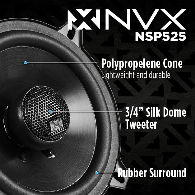 NVX 240W Peak (160W RMS) 5.25" N-Series 2-Way Coaxial Car Speakers with 20mm Silk Dome Tweeters with Speaker Baffles, Sound Dampening, Roller, and Panel Removal Kit