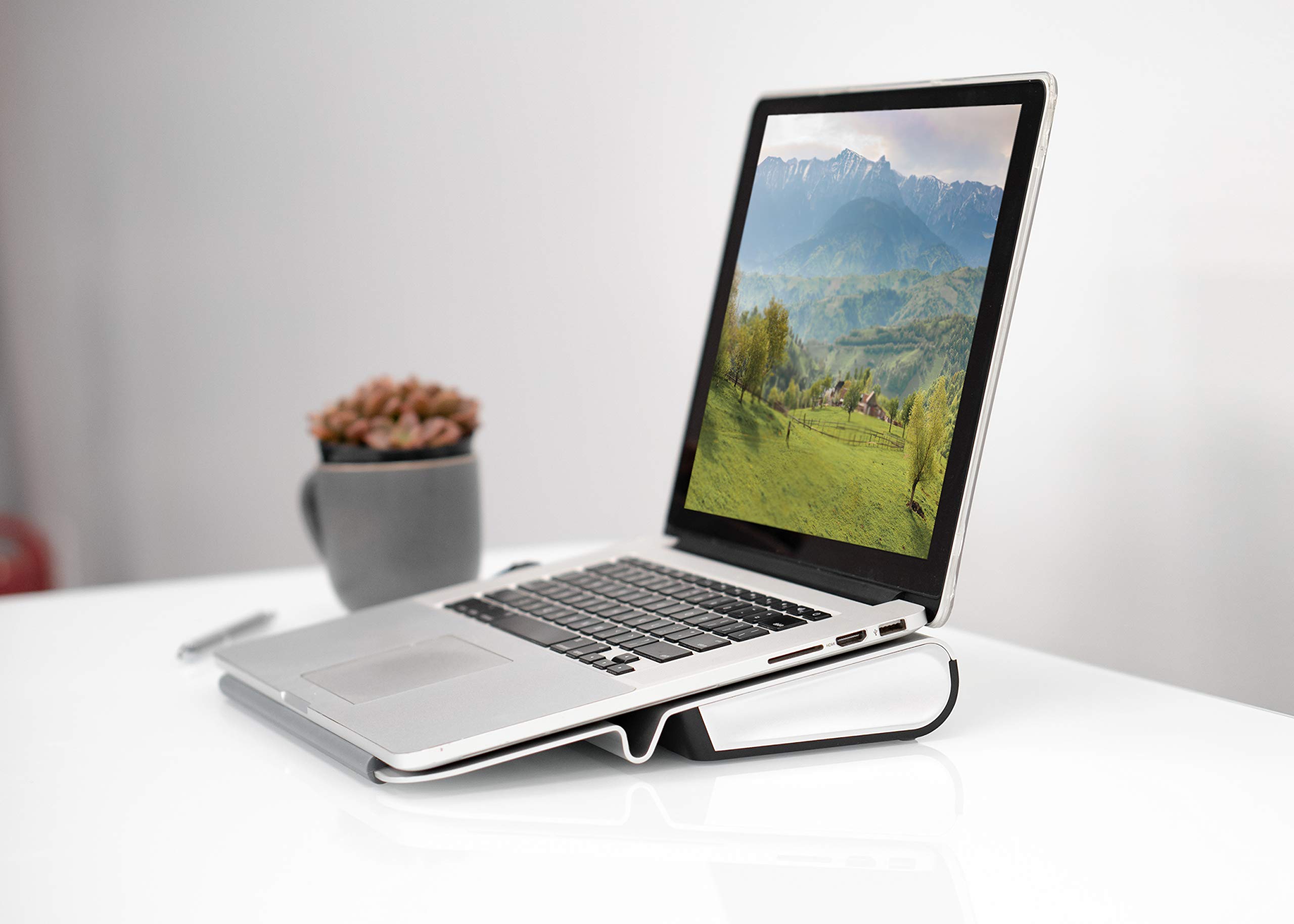 - 💻 Slip-free silicone padding prevent your laptop from sliding off the stand, even when fully extended